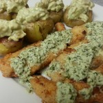Garlic Chicken with a Lime Cilantro Butter Sauce and Grilled Smashed Potatoes with Hatch Green Chile Guacamole